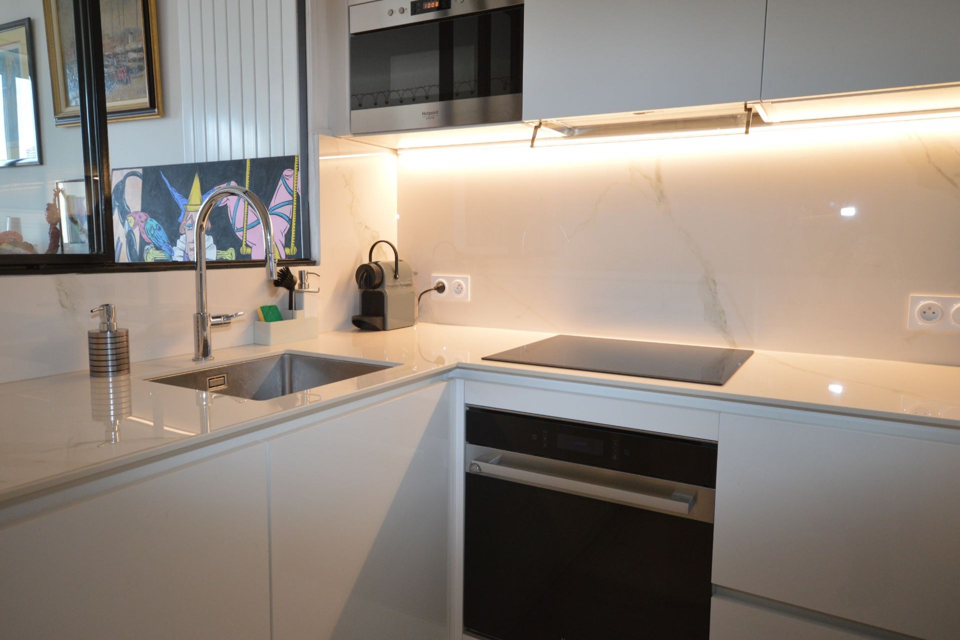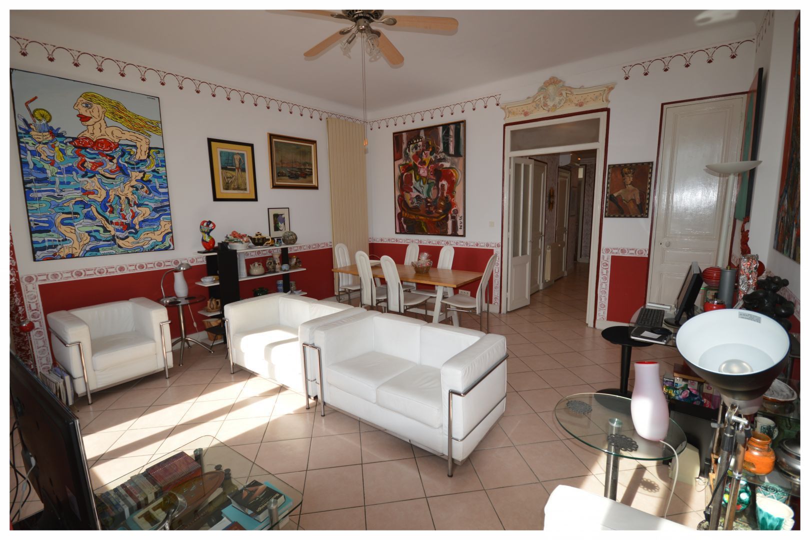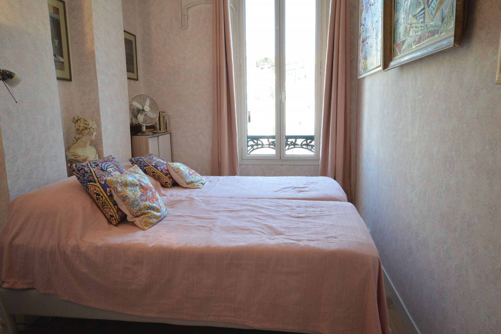 Nice two-bedroom apartment, 700 Sqft ,loacated on the 3rd floor (no lift) of an old building in Cannes.It has a charming view s into city of Cannes and the small sea view.It is very well located and is close to shops.