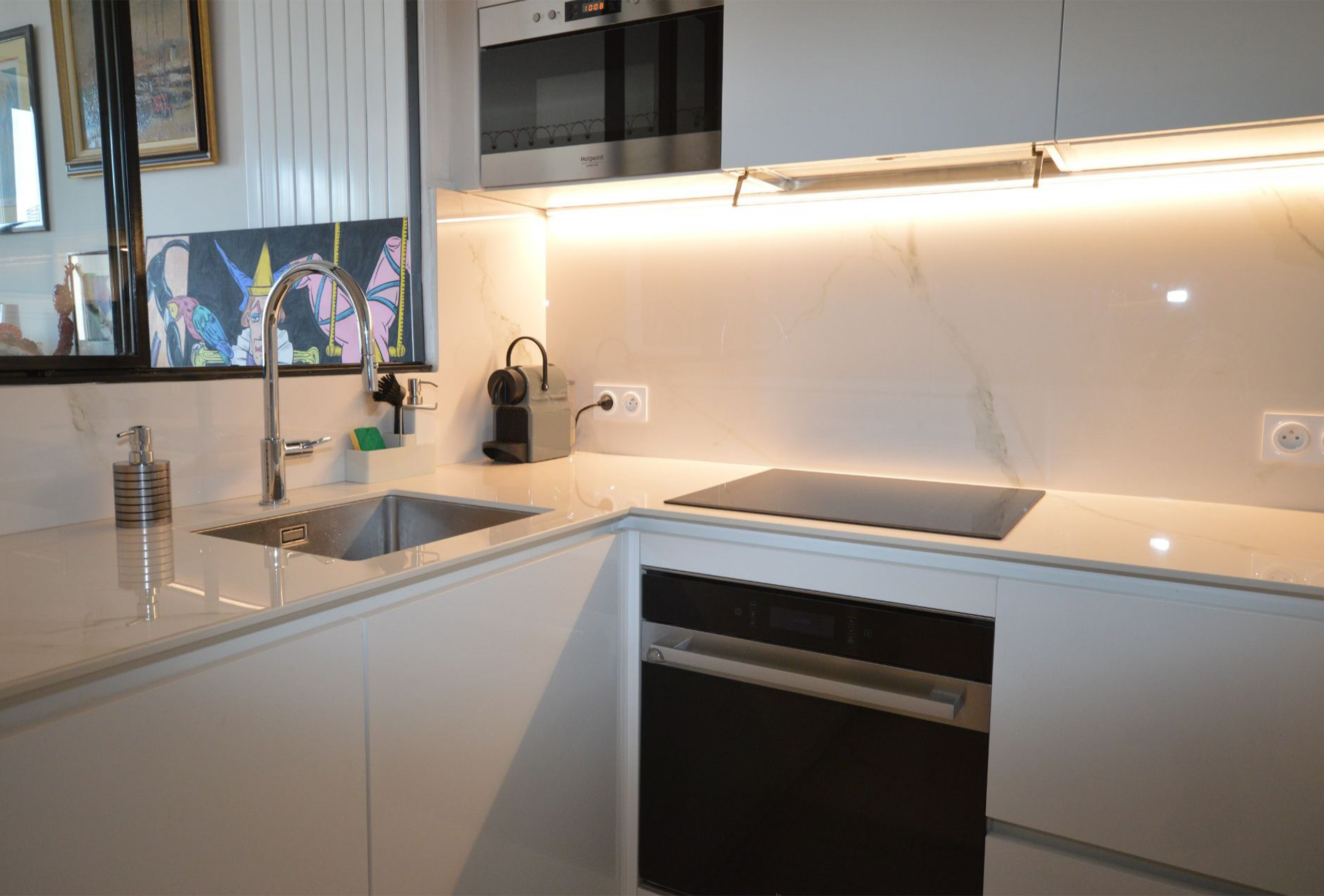 Kitchen : small but fully equipped : dishwasher + microwave + fridge + espresso machine + boiler