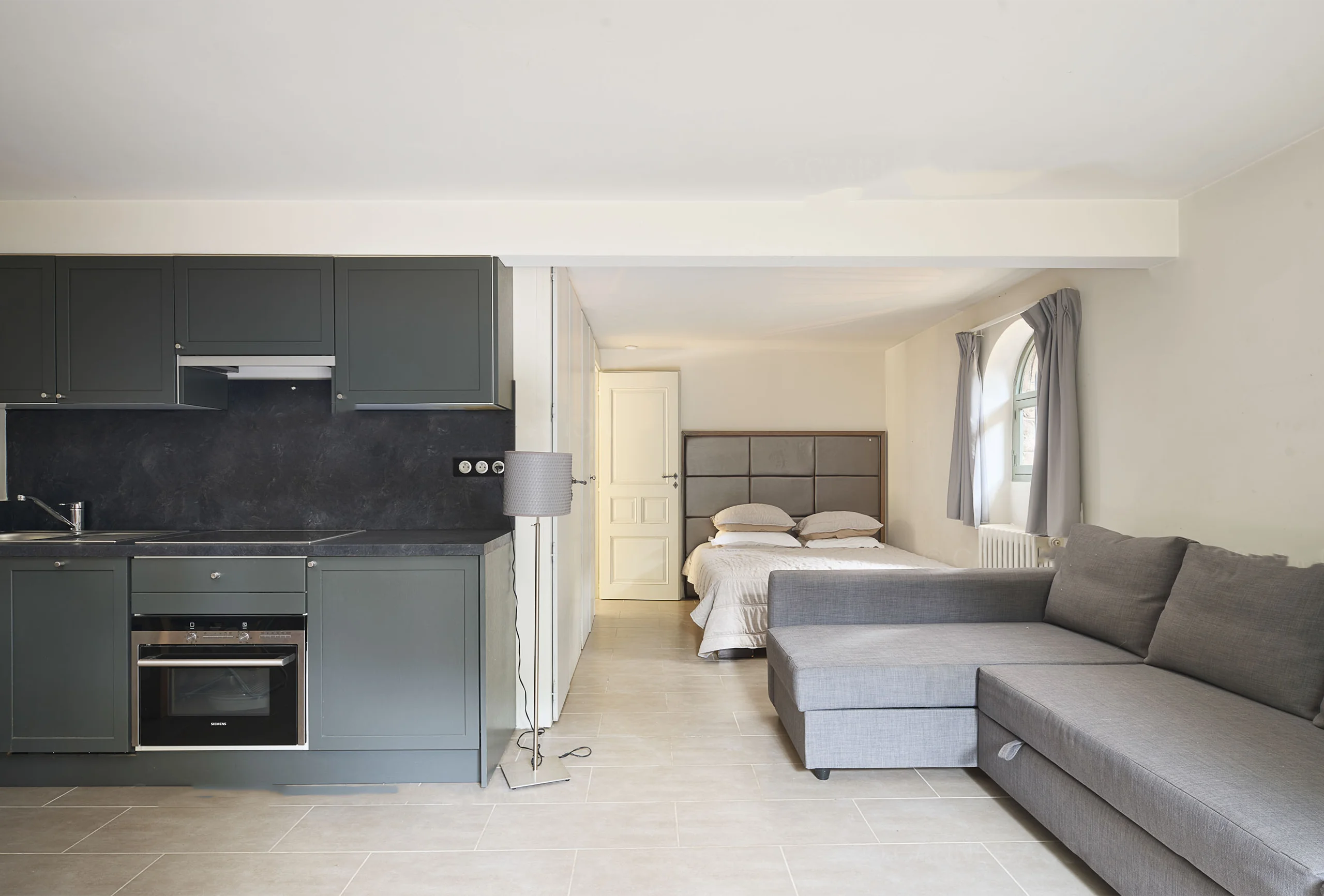 This self-contained studio includes a double bed, a bathroom with a shower, a toilet, and a kitchenette. Perfect for guests or as a discreet professional space.
