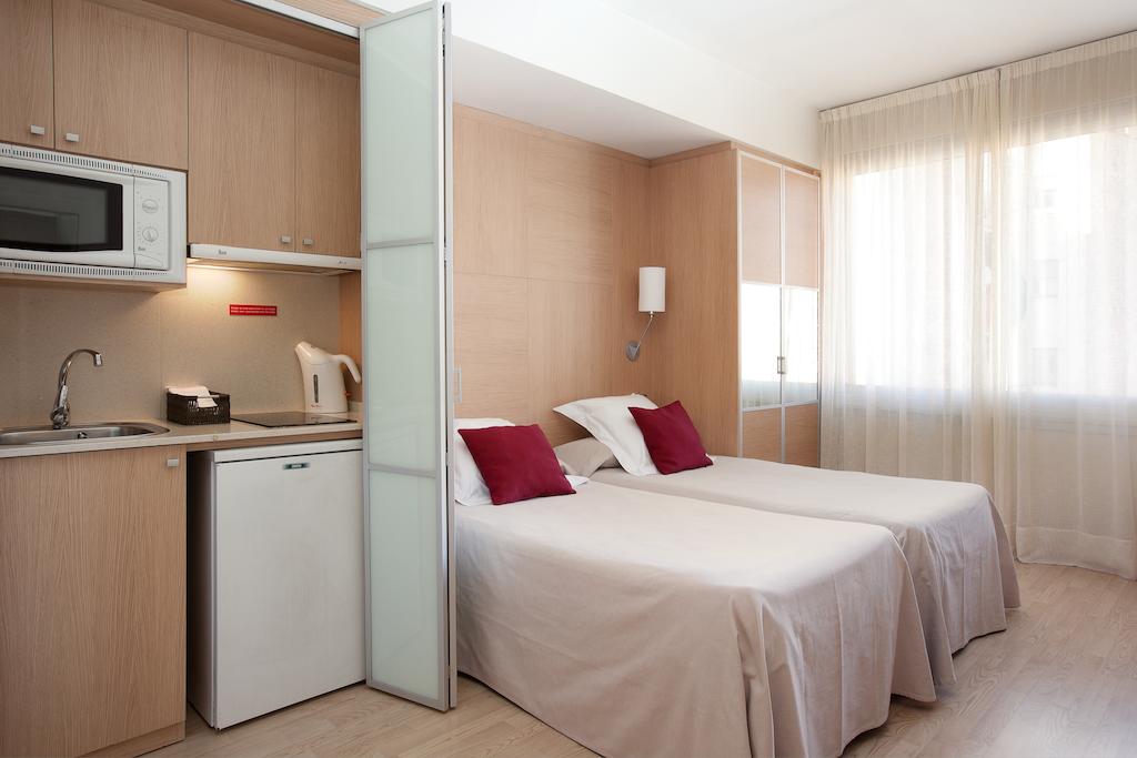 This three-star aparthotel offers car parking in the same building, private garden, cafeteria-bar and laundry. The apartments are perfectly equipped with air conditioning and heating, telephone, satellite TV, complete bathroom, free Wi-Fi connection, American kitchenette, refrigerator, and safe box.
