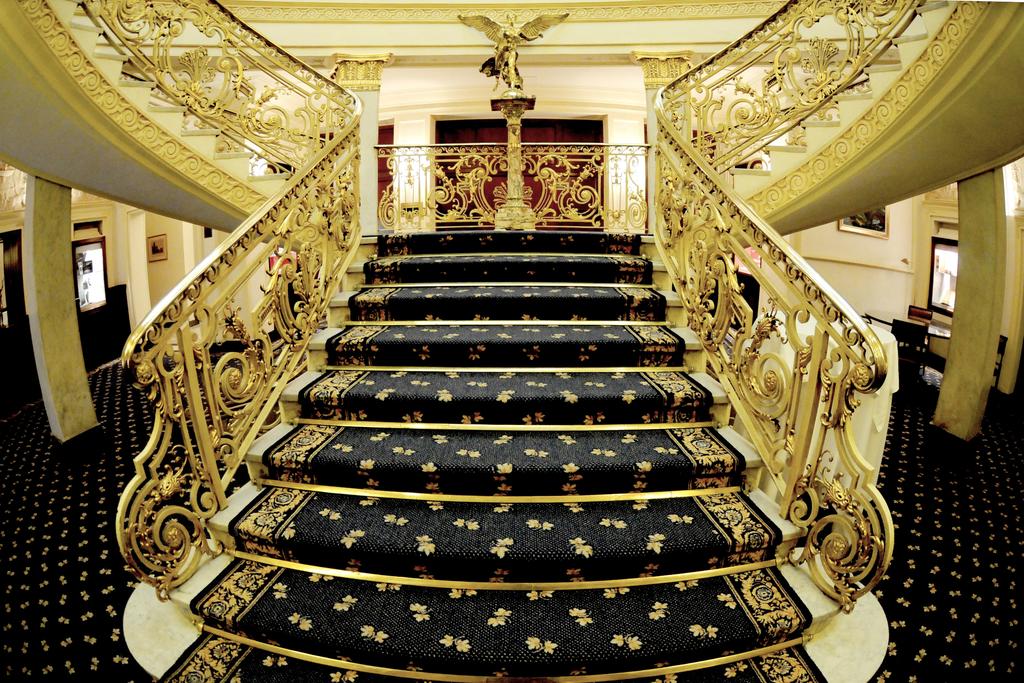 Its grand interior features an impressive staircase and marble columns.