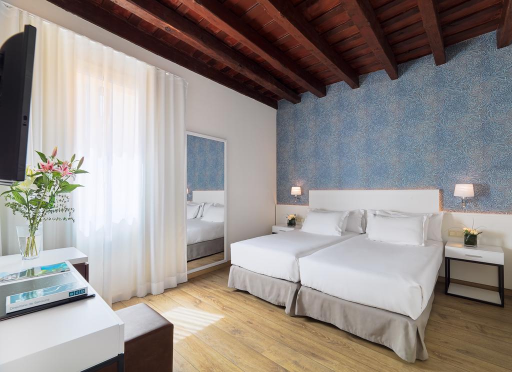 Tradition and modernity come together in this cosy and welcoming hotel. All rooms are equipped with air conditioning/heating, minibar and safe box ( extra cost per day). The hotel also provides a lobby bar, Wi-Fi connection in the entire hotel, ADSL connection in the rooms, Internet Corner, Snack Corner, National and International press, Laundry service and an Inner yard with natural light.
