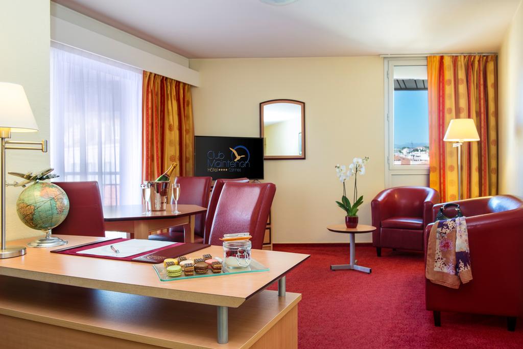 The spacious rooms and suites at Maintenon have air conditioning and offer a flat-screen TV, a refrigerator, a desk and free Wi-Fi access. The private balcony is either south-facing or has views of the hills.