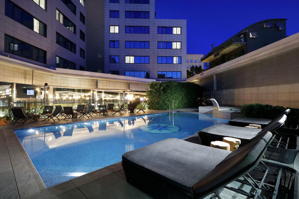 This modern four-star hotel provides a 24 hours reception, Bar, Breakfast buffet, Business corner, daily Press, parking, Restaurant, Rooms for disabled, Terrace, Outdoor Jacuzzi and swimming-pool on a solarium deck offering bar service, fitness center with a gymnasium, sauna, and steam bath. All rooms are fully equipped with minibar, safe box, air conditioning and direct dial telephone.