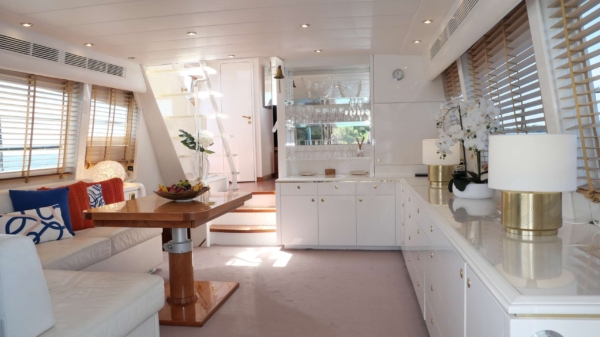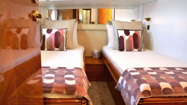 M/Y GUY COACH can sleep up to a maximum of six guests in her luxury three cabin layout which features a master cabin and one VIP cabin and one twin cabin. She also accommodates for her crew in separate crew cabins. It is a best choice for parties and events.