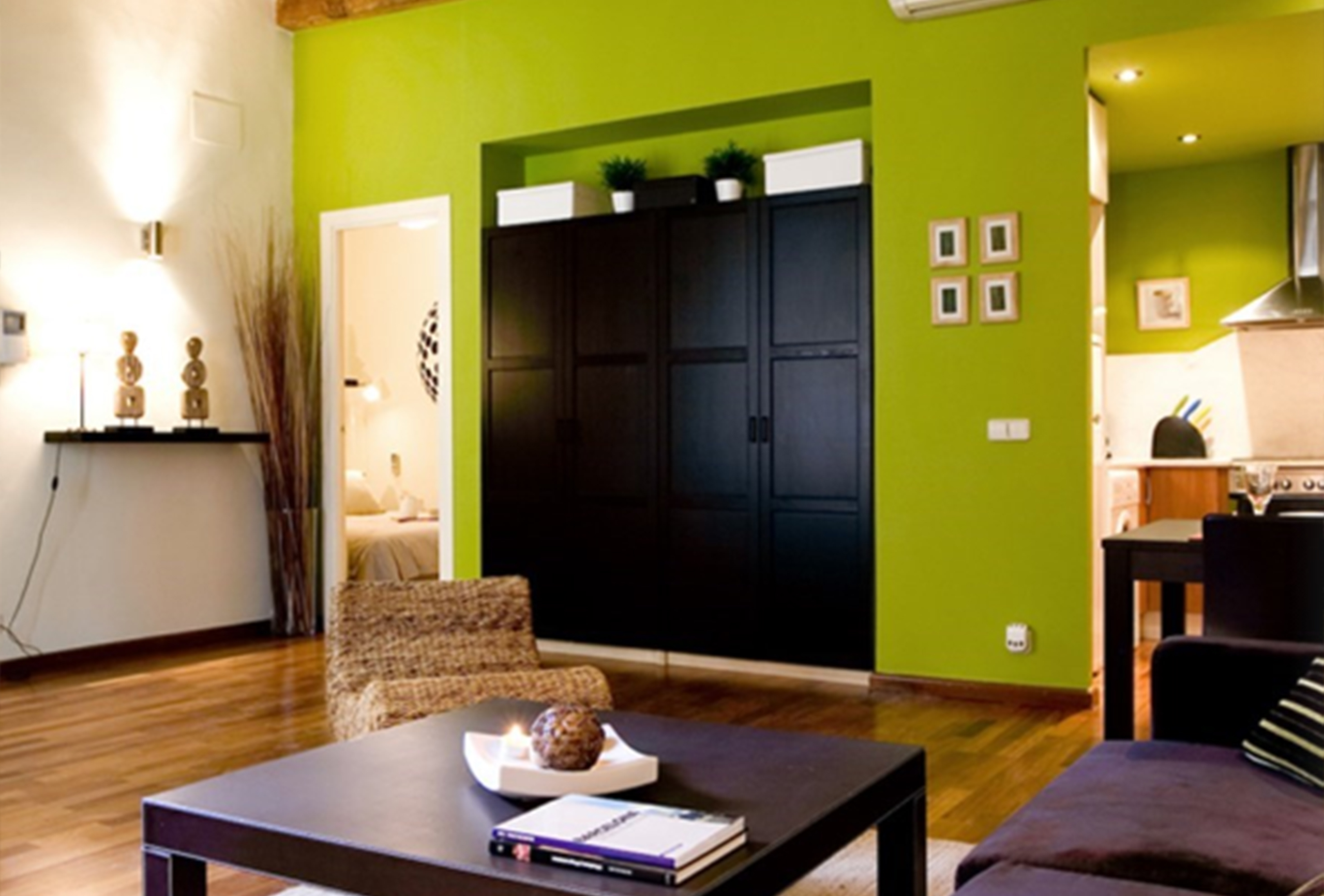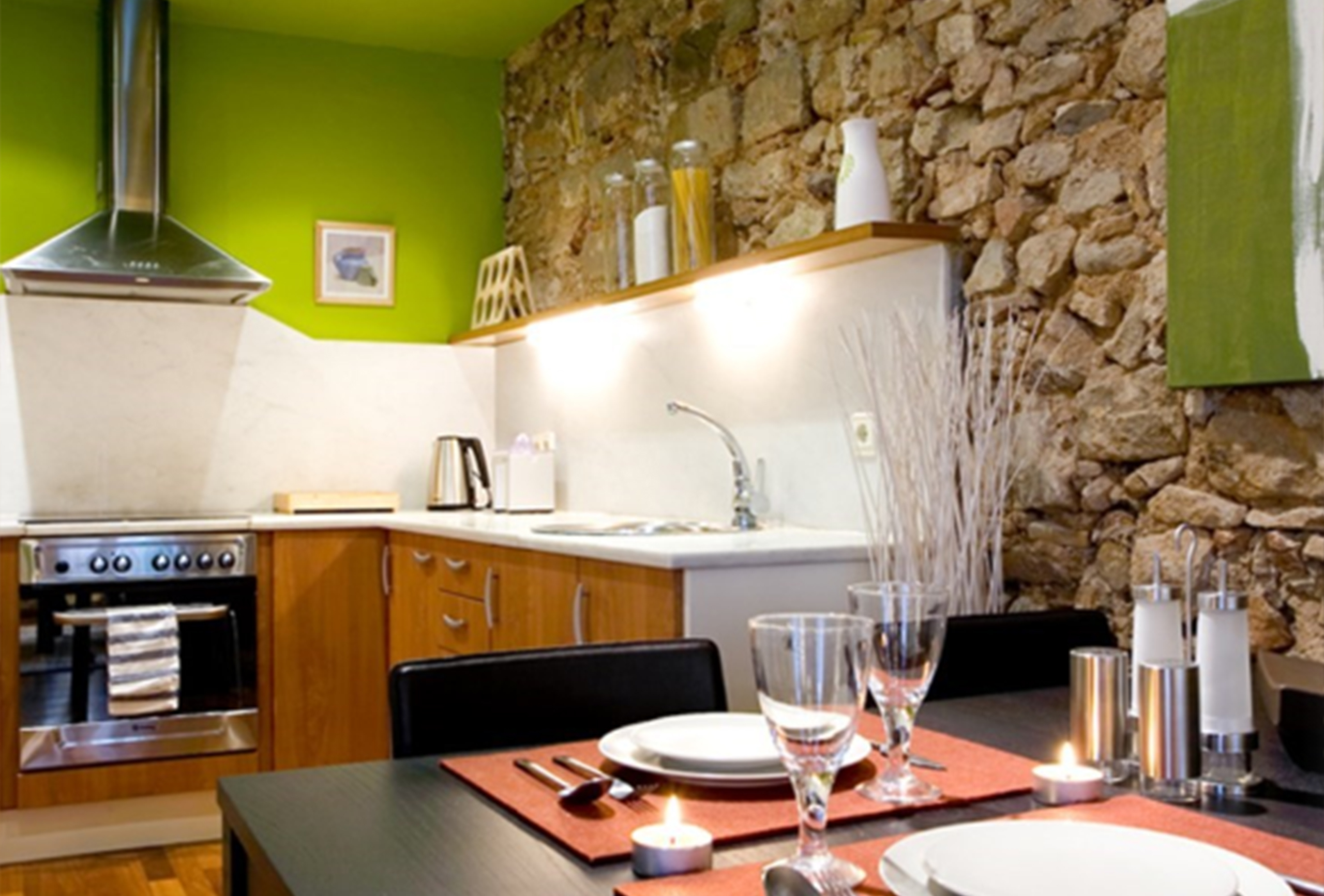 The bedroom accommodates two single beds which can be reconfigured to make up a queen sized bed. The living room contains a comfortable double pullout sofabed. The kitchen has been newly installed and is fully equipped with vitroceramic counter tops, and all the commonplace items like oven, fridge, microwave, pots, pans, coffee machine, fridge etc. The bathroom comprises of a bath/shower unit and is stylishly decorated with mosaic tiling.