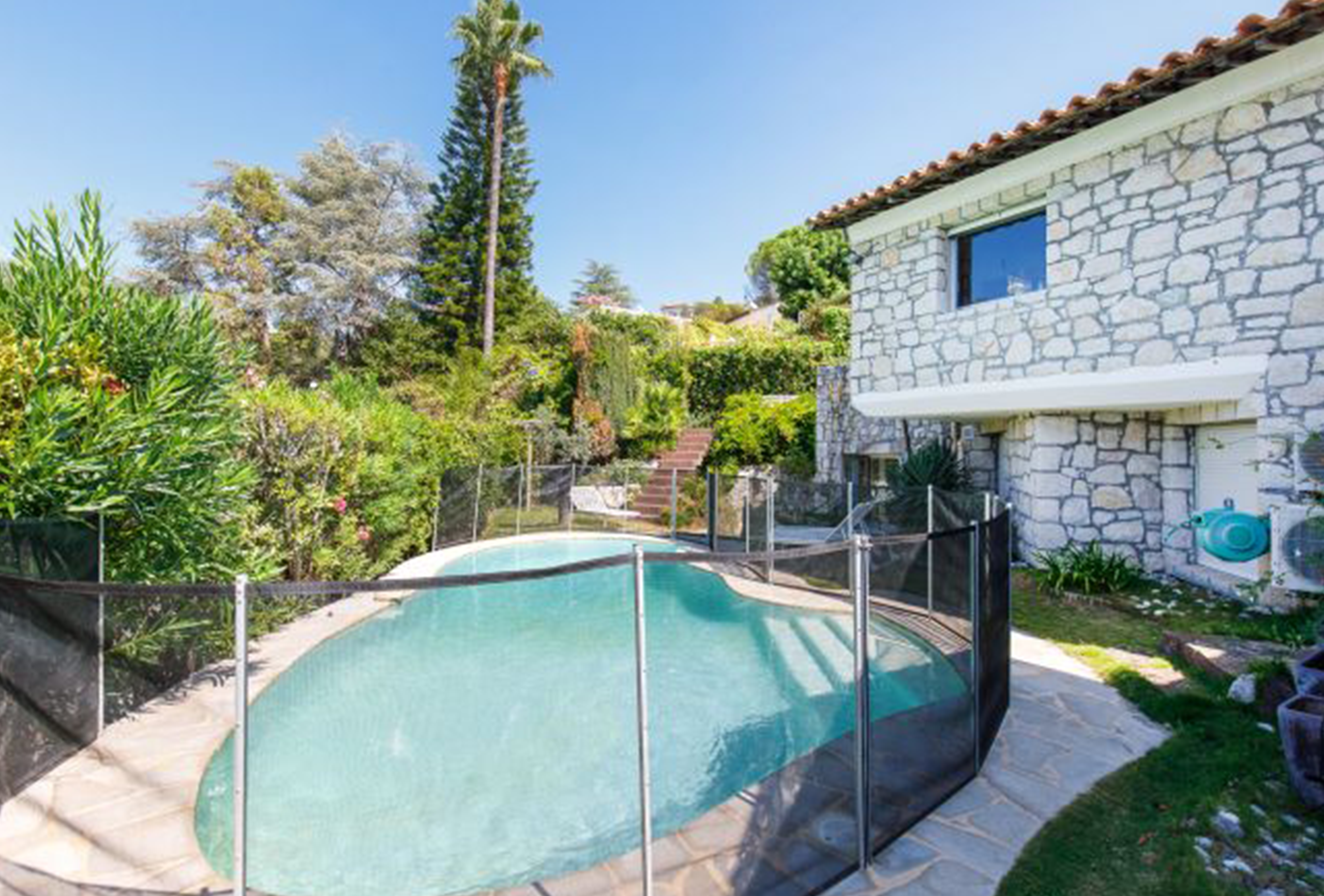 In the heart of Cannes, 1400 m from the Croisette and the beaches, in a small secure residential estate of 12 villas, beautiful character villa with sea view located on a plot of 500m². Private pool with steps (8m x 4m, Depth. 80/220 – Barrier). Terraces with garden furniture and sunbeds. Parking. Bus stop at the foot of the estate. Restaurants and shops 500 m. Palais des Festivals 3 km. Air-conditioned villa of 160m² on 2 levels with: Living/Dining room with TV (TNT), Internet 4G, exit to terrace. Fully equipped open kitchen. Guest toilet. Laundry room with washing machine and dryer. At pool level: Master bedroom with 1 double bed (160). Shower room. 1 Bedroom with 2 single beds (2×80), Shower room. Separate toilet. 1 Bedroom with 1 large bed (140) with exit to pool. Bathroom. Independent bedroom in the pool-house with 1 large bed (140). Shower room. Separate toilet.