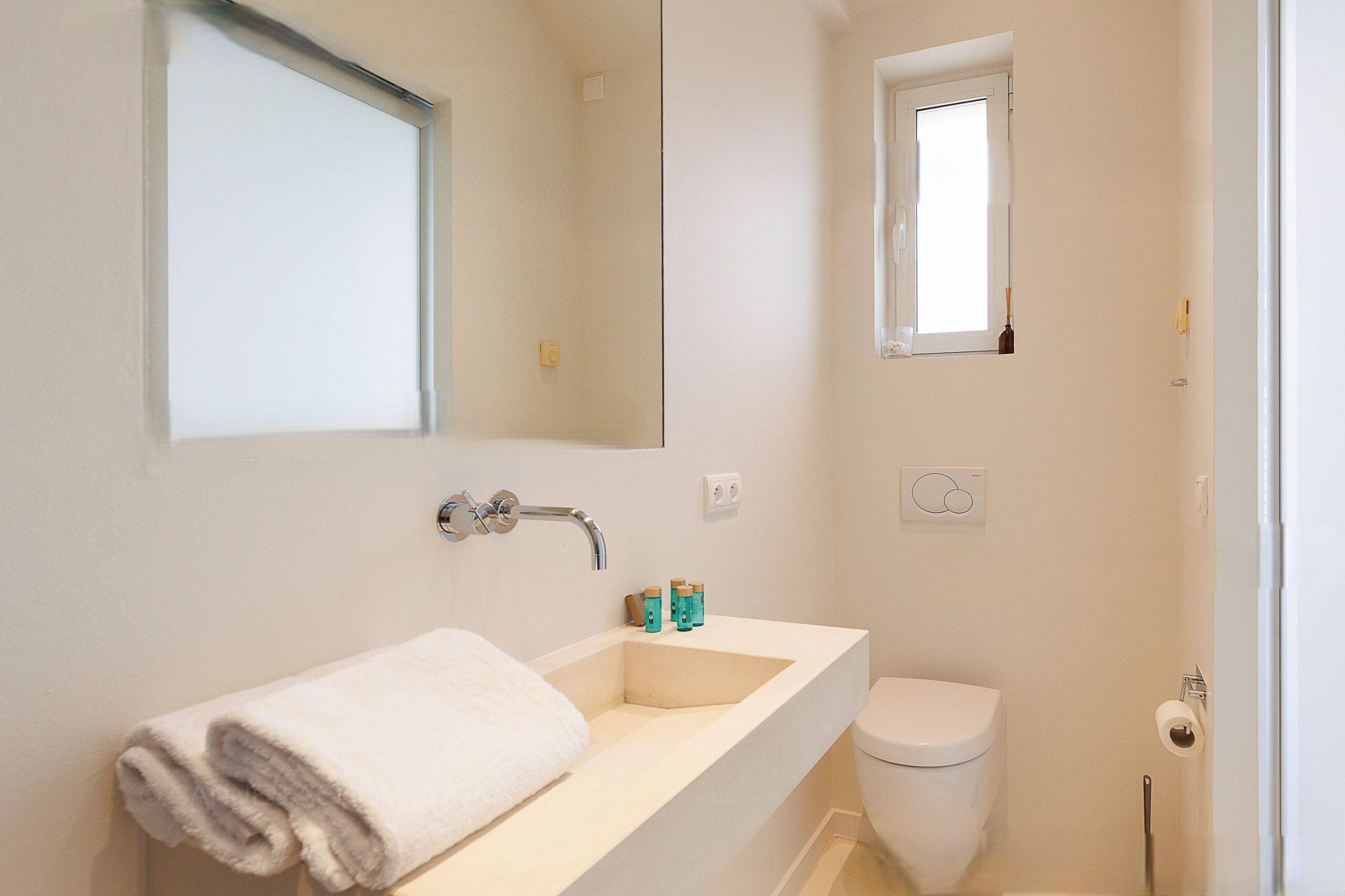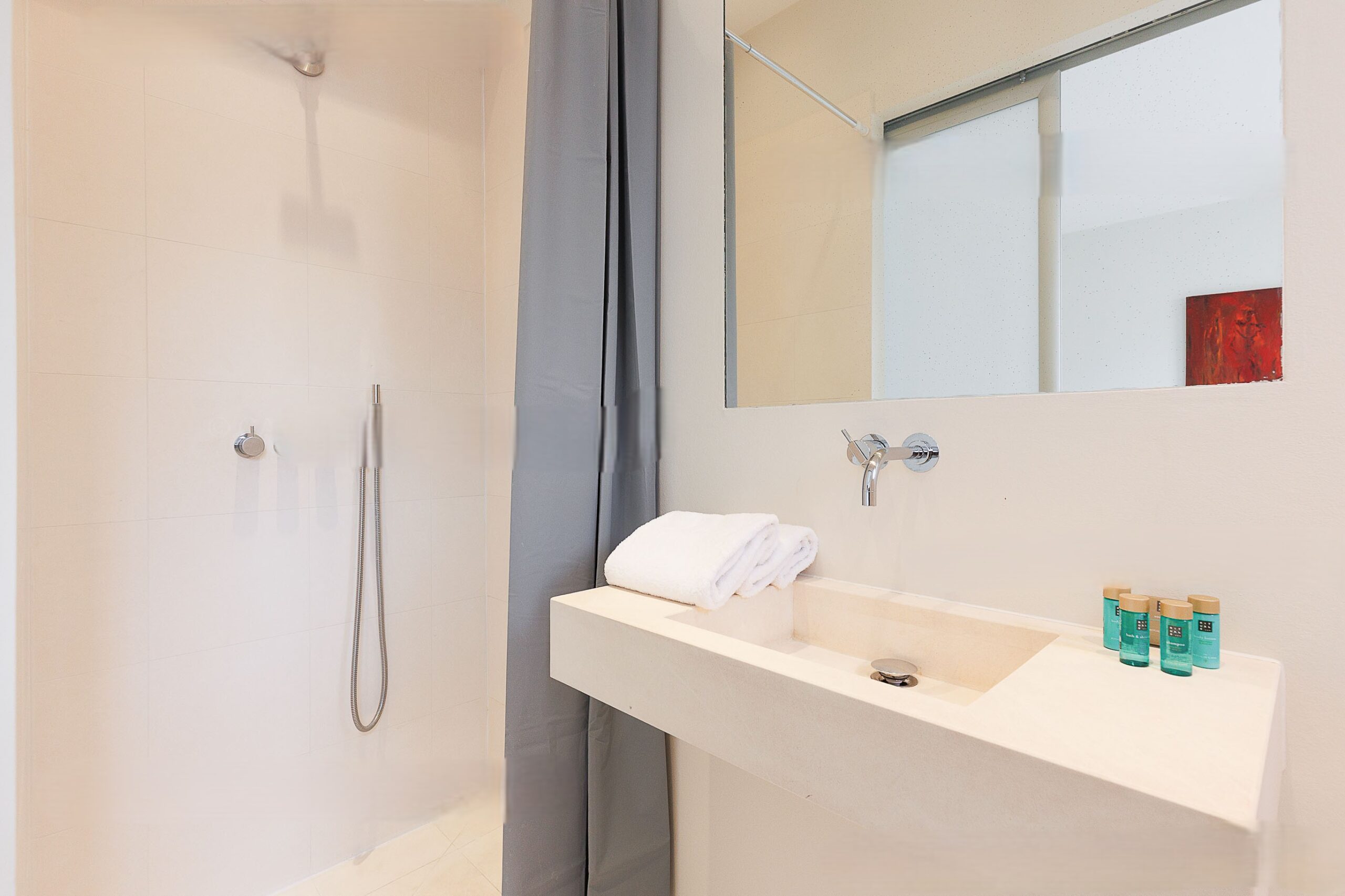 The second bedroom has an en-suite shower cabin. It features two single beds that can be combined into a double.