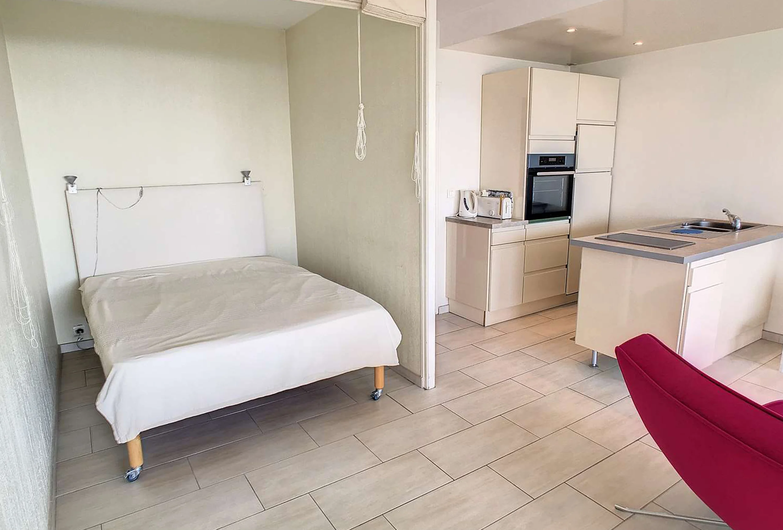 Spacious studio apartment located in the peaceful suburbs of Cannes, just a 2-minute walk from the beach and a 30-minute stroll to the city center, the Croisette, and the Palais des Festivals. Conveniently accessible by bus, this ground-floor unit is nestled in a modern, quiet building surrounded by a lush park.