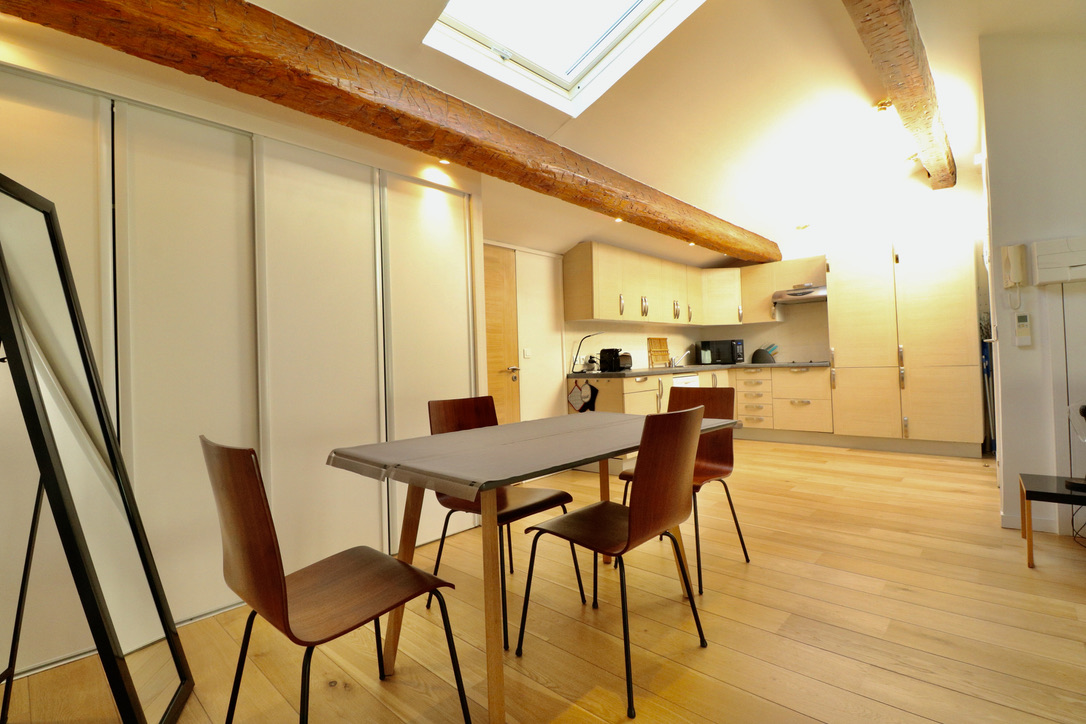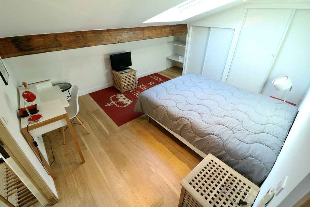 Situated on the 4th floor of a charming, well-maintained bourgeois building (no lift), the apartment features a bright and spacious living room with high ceilings, air conditioning, a comfortable sofa bed, TV, and WiFi. The open-plan kitchen is fully equipped with all modern amenities for a pleasant stay.
