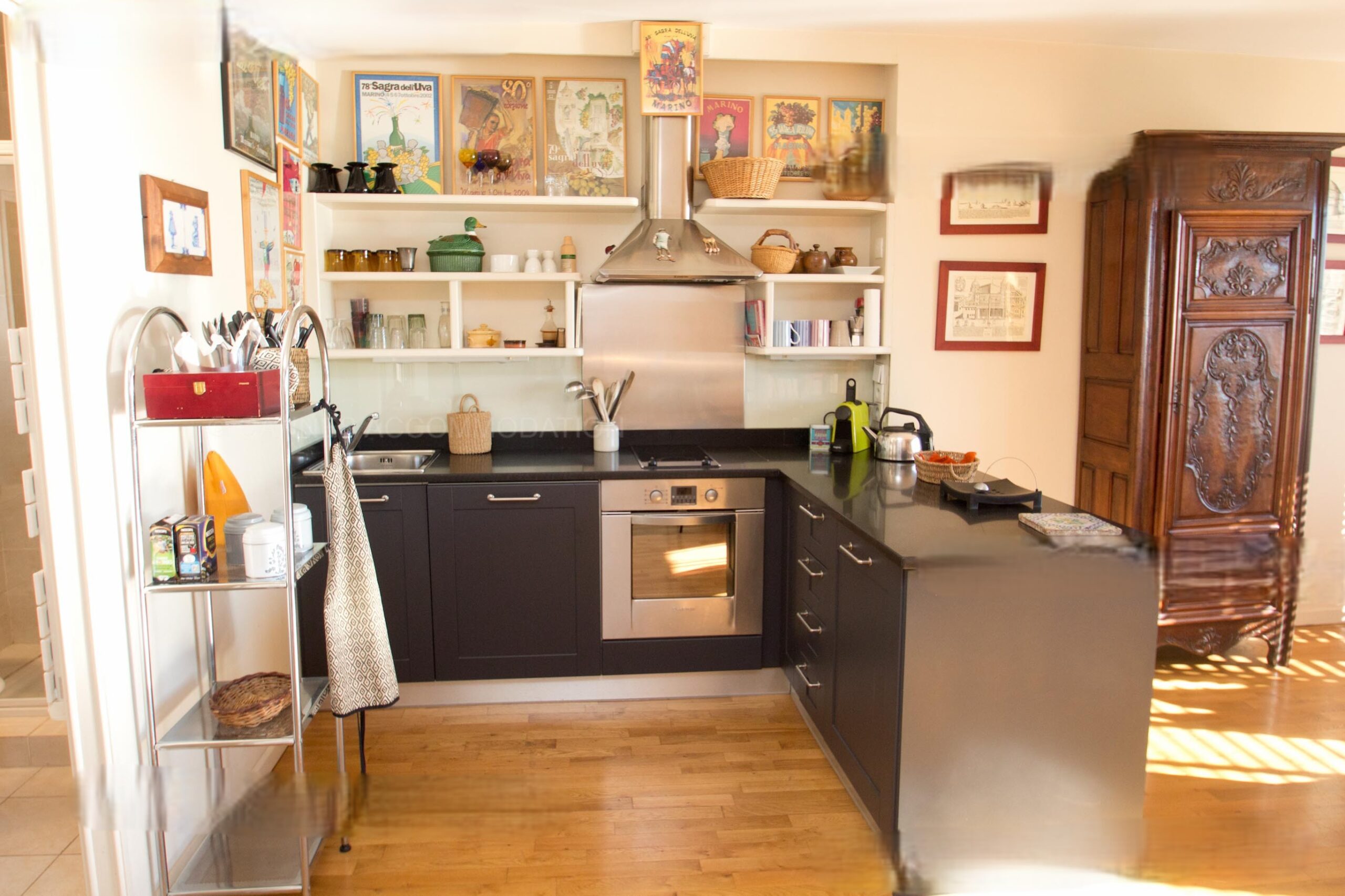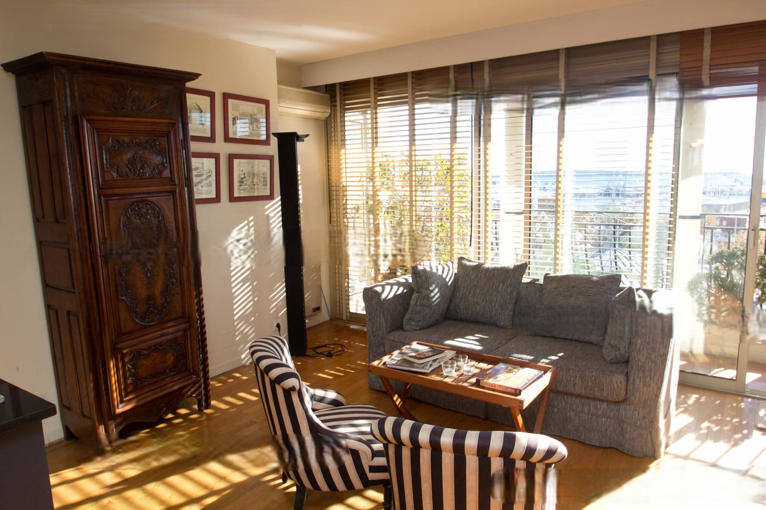 The apartment is nestled on the 4th floor of this well-maintained building and welcomes you in a warm atmosphere. The view is just splendid; everything adds up for a pleasant stay.