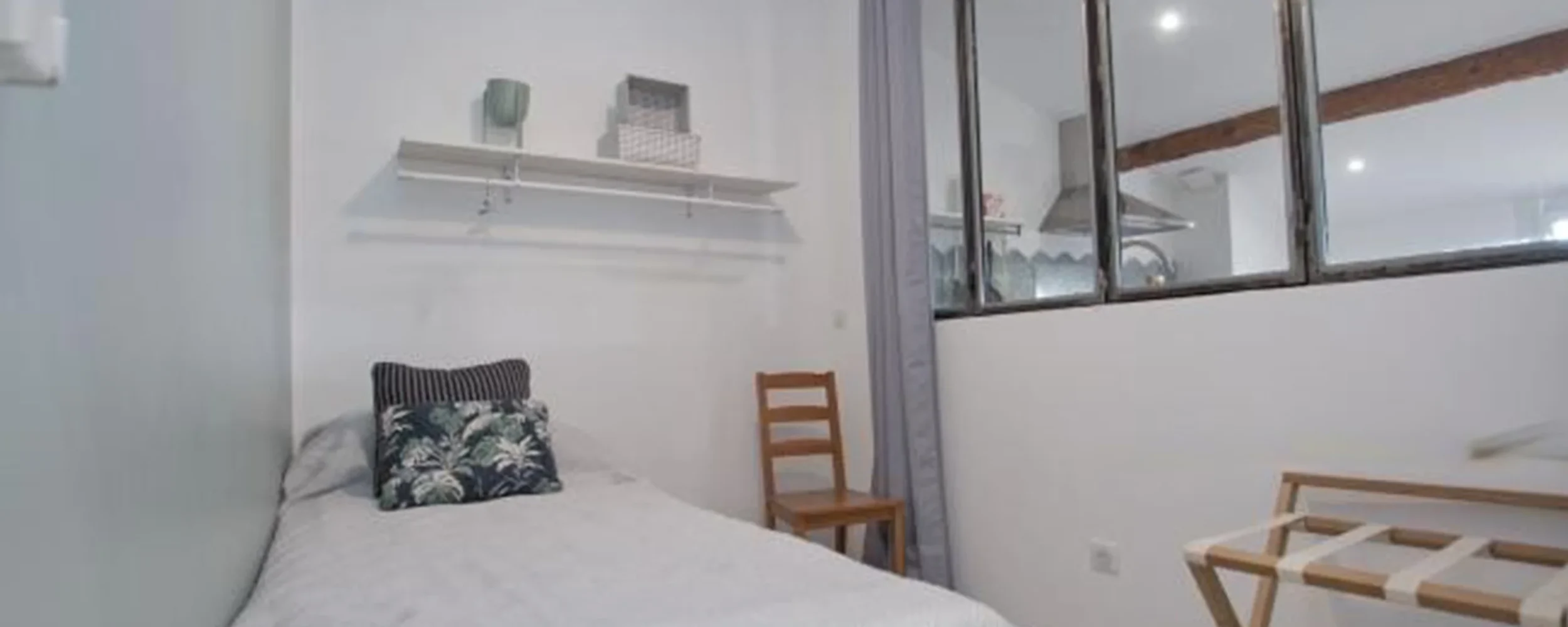 The apartment is nested on the fourth and last floor. It has been fully renovated with taste. The pale tones give a peaceful atmosphere to the place. The main room has a sofa bed and a well equipped open kitchen. The bedroom features a double bed. You will also find an alcove in the living-room with a single bed. The bathrooms has a shower. For more comfort, toilets are separated.