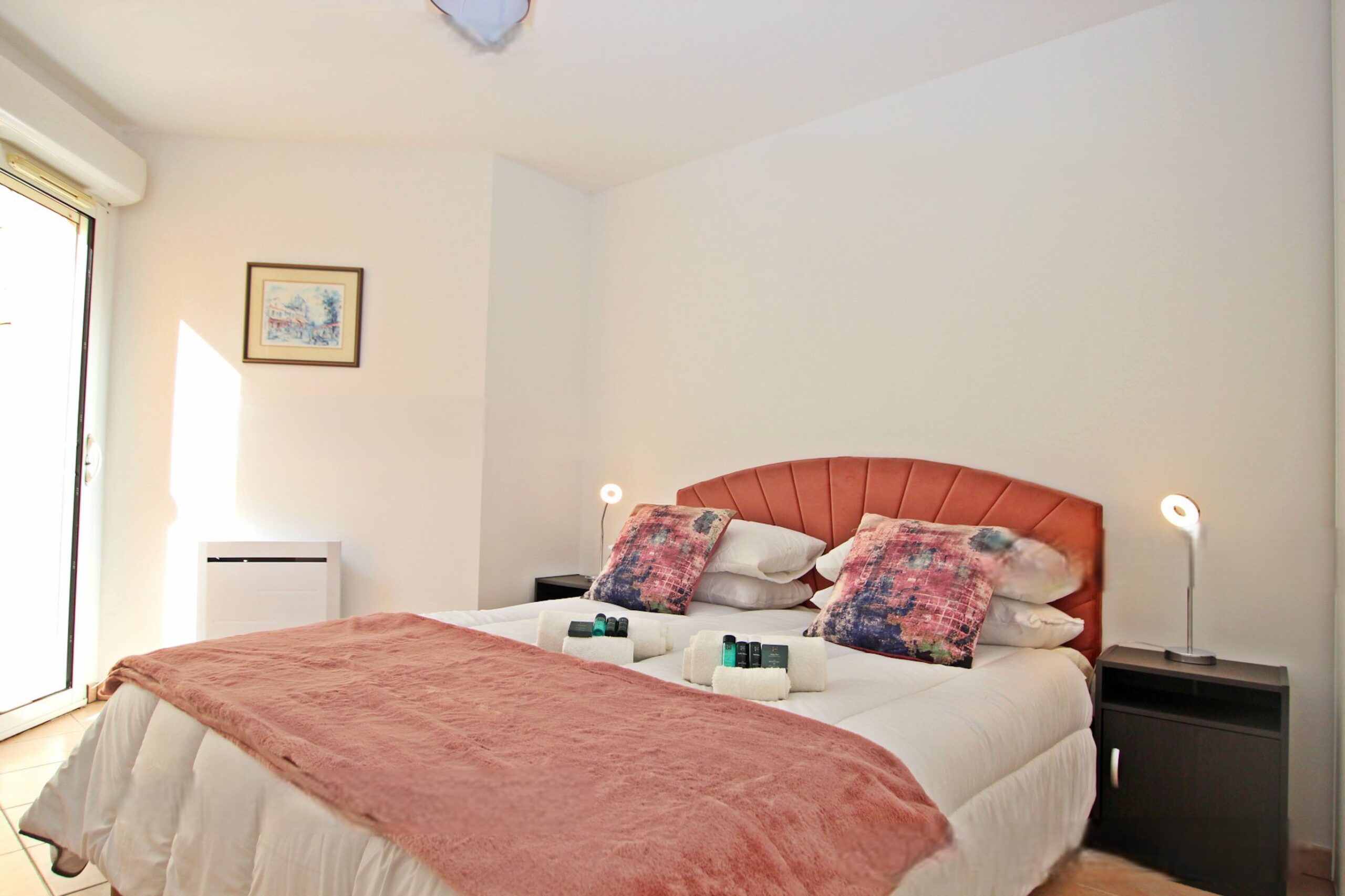 1 bedroom with 2 single beds (2 x 90cm), cupboard. Access to the garden.