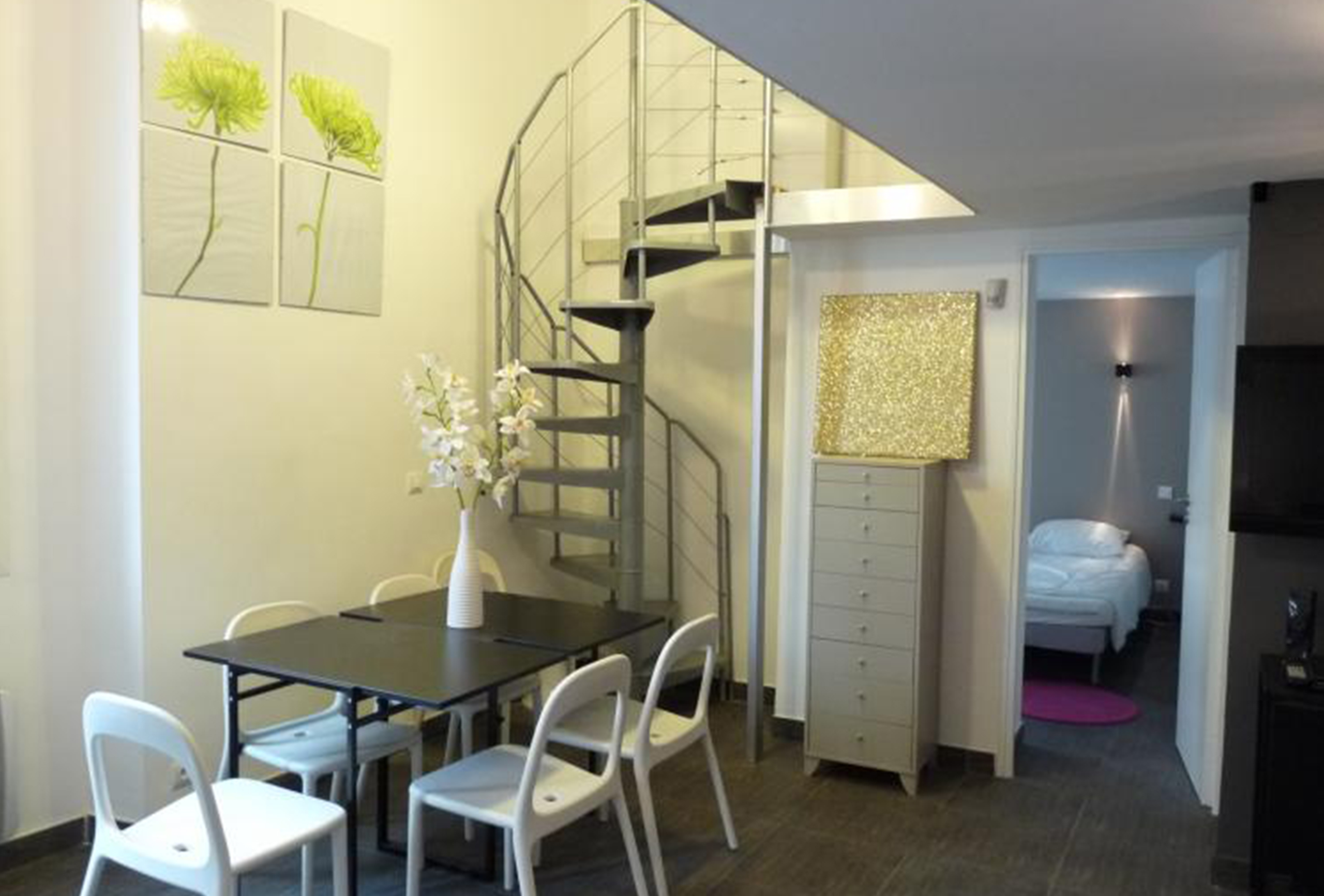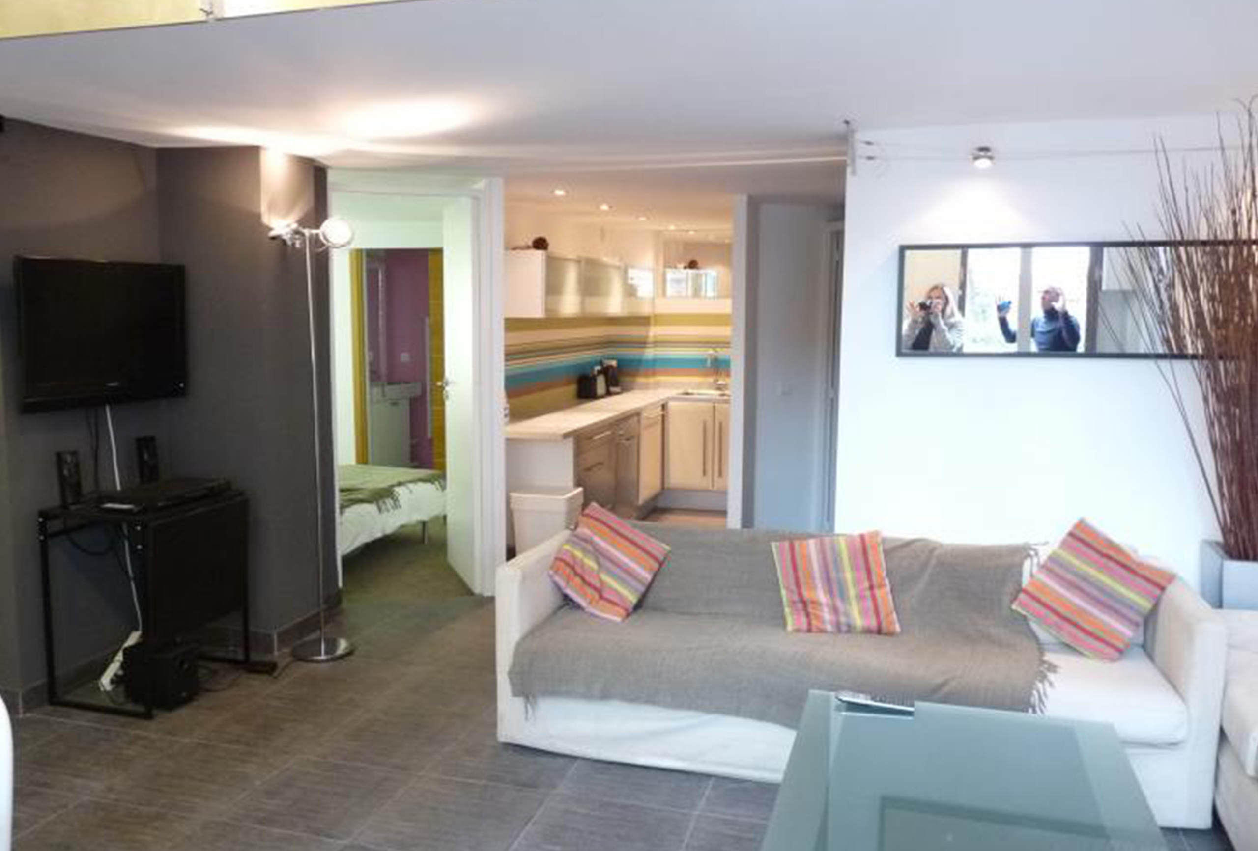 There are 4 bedrooms which each boast two singles beds that can be made into double beds making the apartment perfect for conferences or a large family group. The apartment has been recently refurbished and decorated in a modern style. There are also 2 shower rooms and one bathroom. The kitchen is fully equipped with the added plus of a washer/dryer. The WiFi access and the private entrance make this the perfect working environment, quiet, exclusive and just minutes from the Palais.